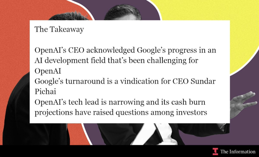 上个月,OpenAI首席执行官奥特曼告诉同事们,谷歌最近在AI方面的进展可能会「给我们公司带来一些暂时的经济阻力」。