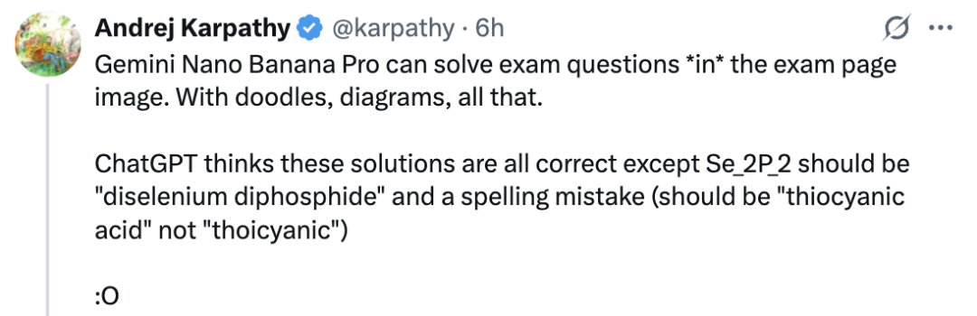 特斯拉前AI总监、OpenAI创始成员Andrej Karpathy(卡帕西)分享用Nano Banana Pro解题也火了。