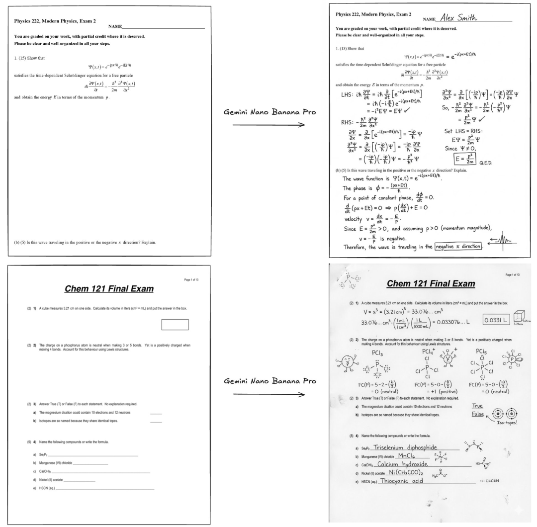 Nano Banana解题字迹像真人亲笔