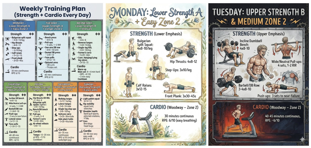 没过几个小时,他又发了一条推文,用Nano Banana Pro定制了每周撸铁计划,还直接生成了可打印的海报。