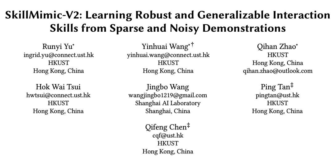 首先是被收录于SIGGRAPH 2025的SkillMimic-V2: Learning Robust and Generalizable Interaction Skills from Sparse and Noisy Demonstrations。