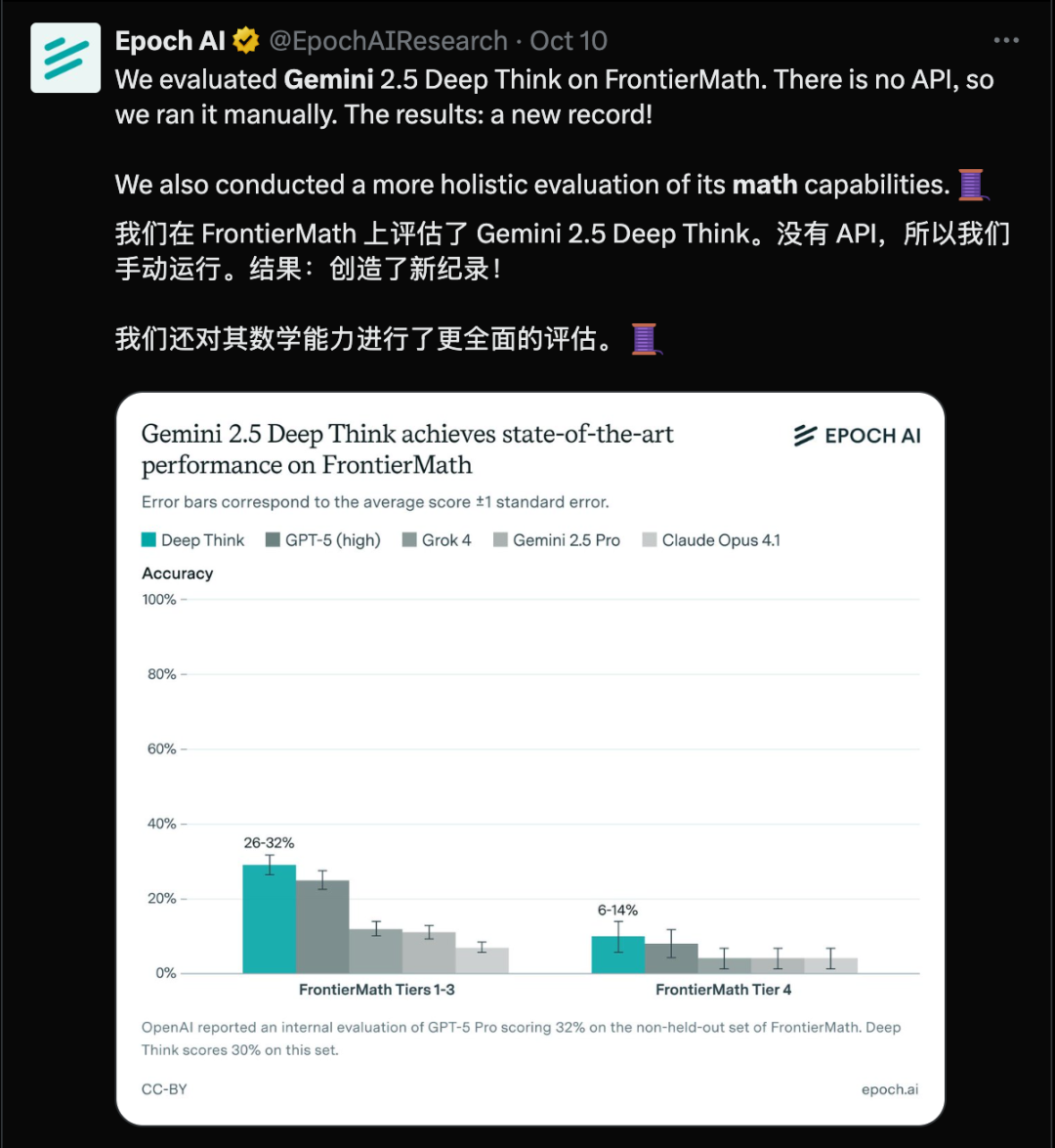 正是此前的IMO金牌得主,在最新的FrontierMath测试中,其数学能力也远超GPT-5(high)等模型。
