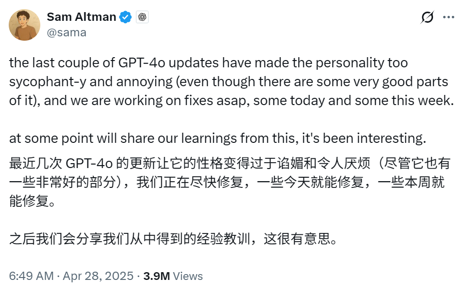 而GPT-4o又恰好拥有一种「过度贴近」的语言方式。