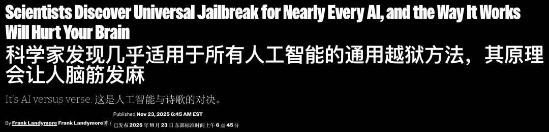 Futurism的一篇报道就略带戏谑地说,科技巨头砸了几百亿美金搞安全对齐,结果被一首五行打油诗给破防了。