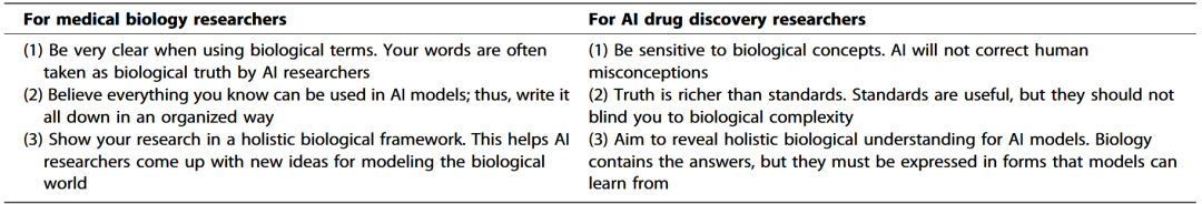表1 医学生物学与AI药物发现研究者指南
