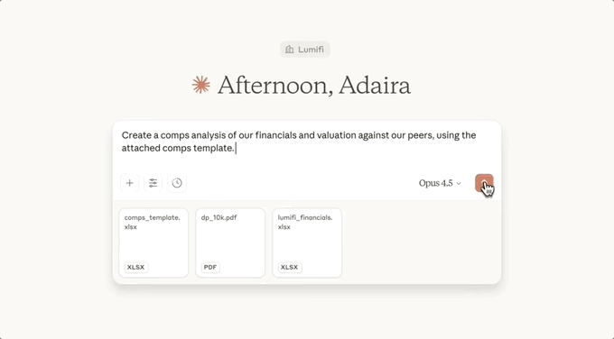 让它用附件模板创建财务对比分析,分分钟就能完成模板读取、同行数据收集与估值倍数表创建,直接输出Excel成果: