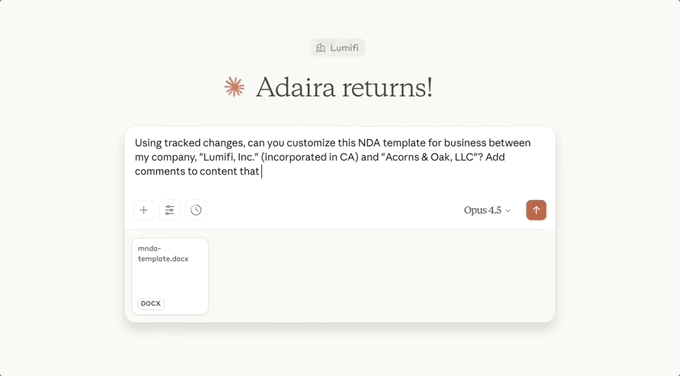 用它修改法律文档,它也能迅速解包模板、修改公司名称、检查签名块,最终生成的Word文件包含修订痕迹与定制内容: