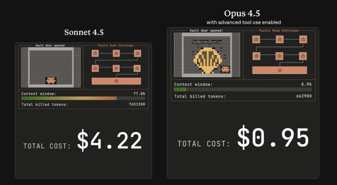 在最高努力度设置下,其性能较Sonnet 4.5提升4.3个百分点,同时tokens用量减少48%。