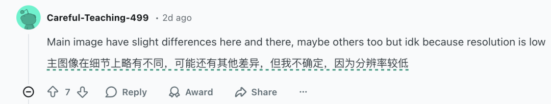 这场套娃游戏的细节处还是有诸多bug,而且很多人玩儿无限套娃的时候都设定它画出来的是一张老照片,噪点堪比ccd,分辨率很低,给了AI很多可以“出错”的模糊空间。
