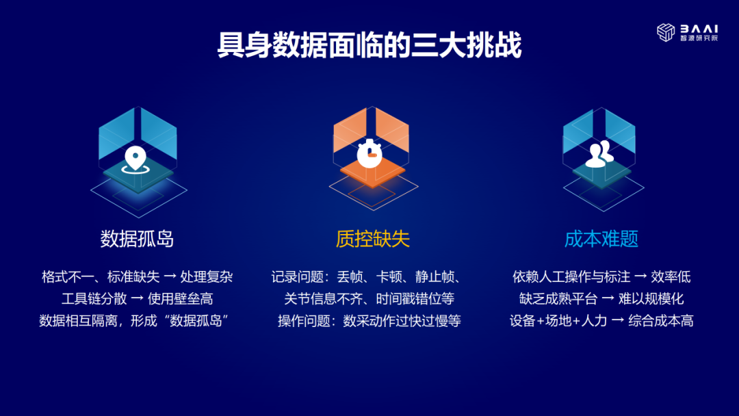 具身数据是当前具身智能发展中最热门的话题,然而,它仍面临着数据孤岛、质控缺失、成本难题三大挑战。