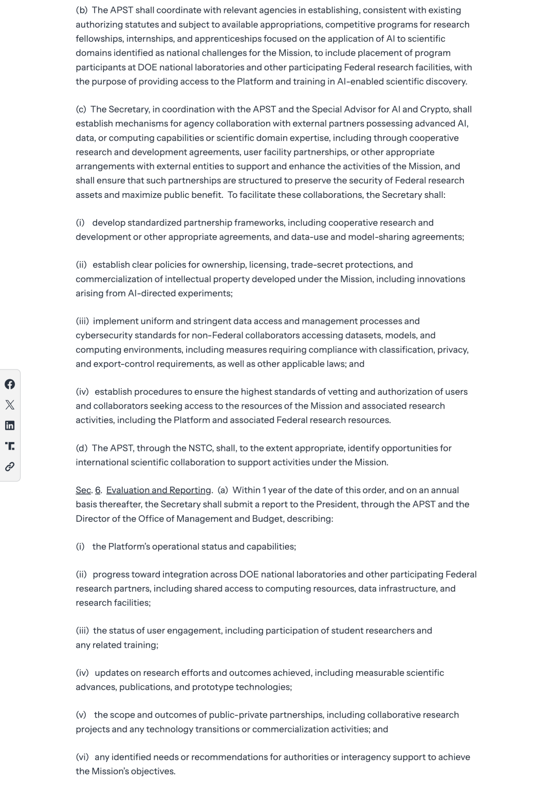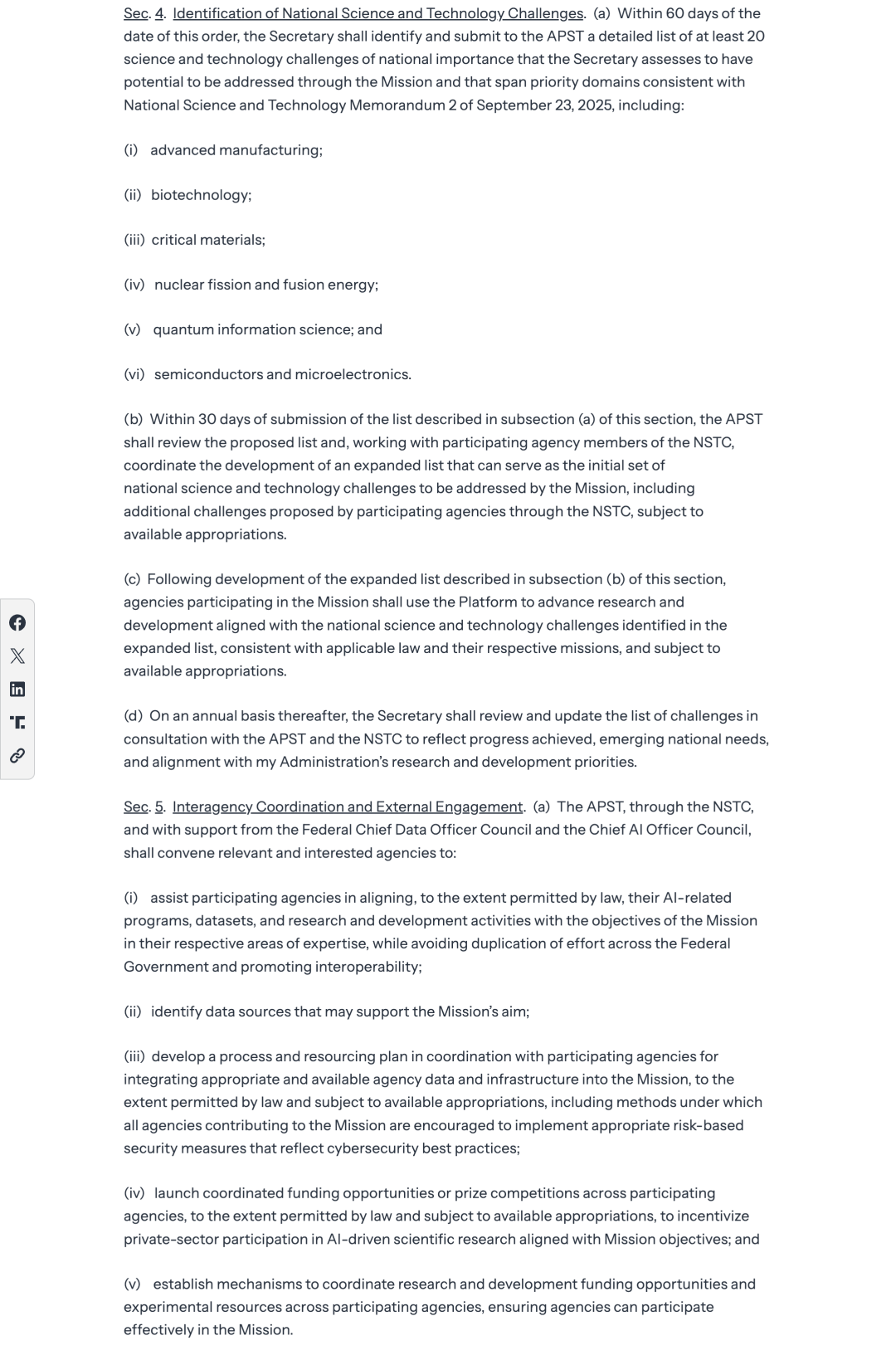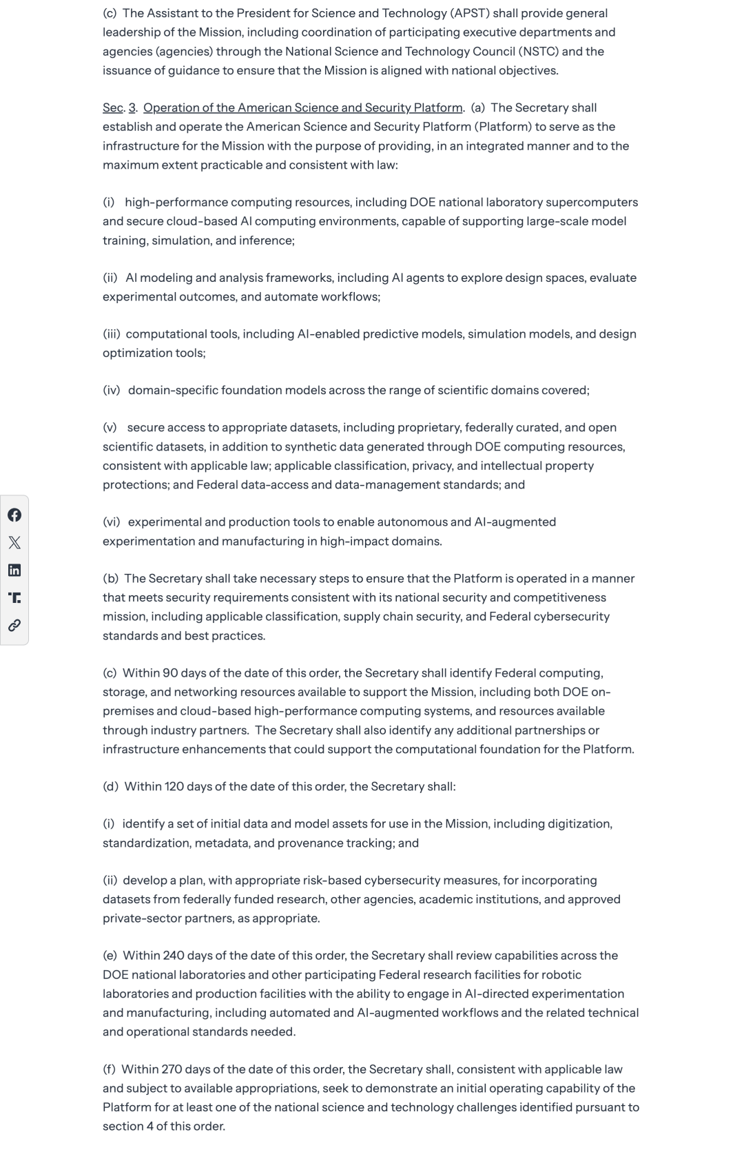 为了支撑这一宏大愿景,行政令要求建立「美国科学与安全平台」。
