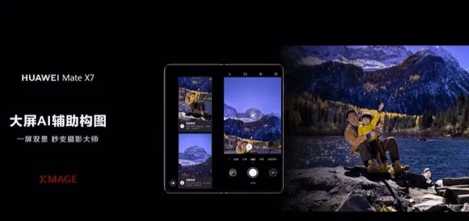 得益于折叠屏展开后的超大取景面积,Mate X7还能用上华为最新的AI辅助构图能力。