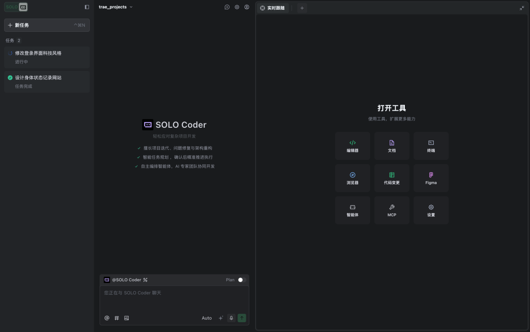 非常惊喜的是,TRAE国内版终于也上线SOLO模式了,而且完全免费!