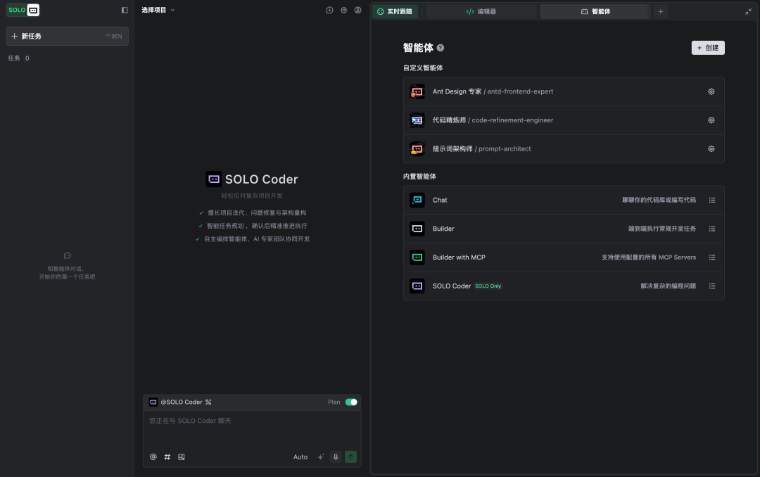 SOLO Coder是SOLO模式下内置的专业智能体。