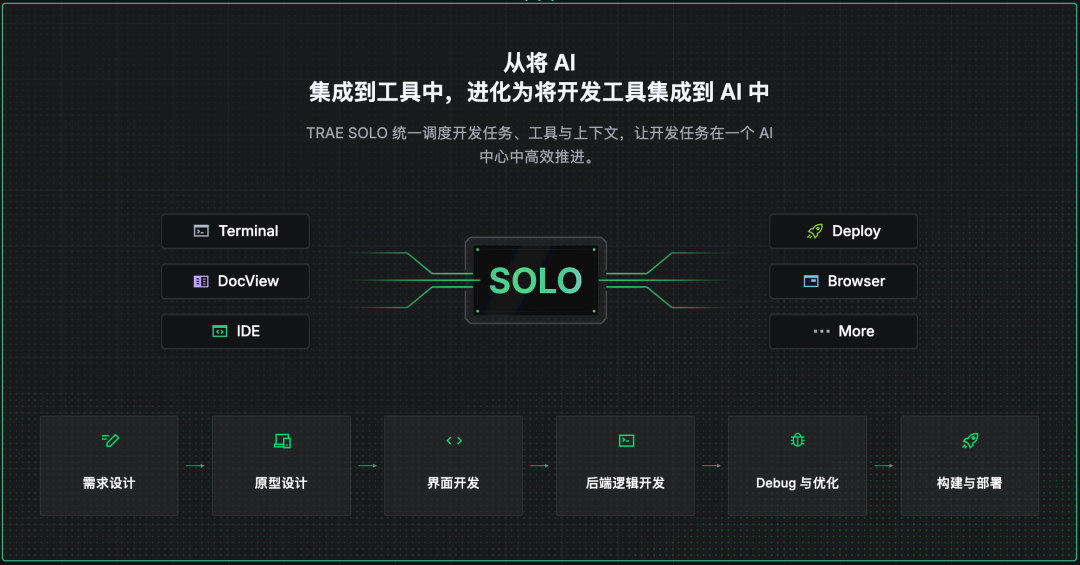 另一方面,TRAE SOLO的理念也降低了使用门槛,适应更广泛的开发场景。