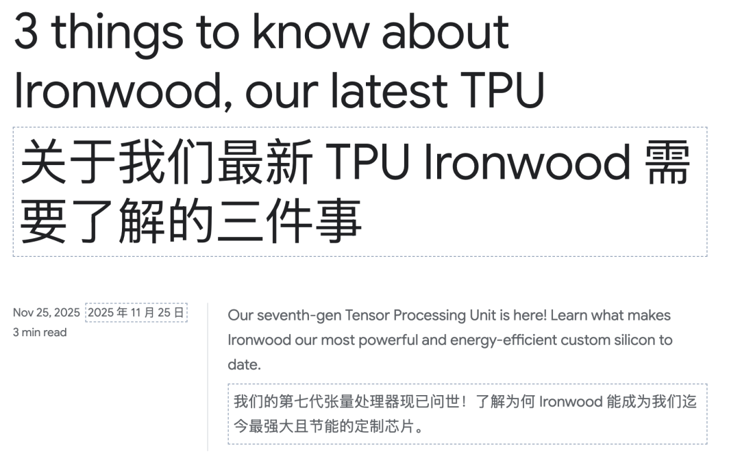 在Gemini 3爆火后,谷歌的官方博客迅速跟进了一篇最新TPU的介绍帖子。