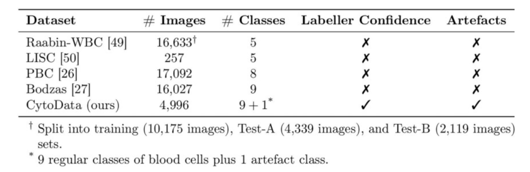 * 构建包含成像伪影及标注者置信度的新血细胞图像数据集,解决现有数据集的关键局限。