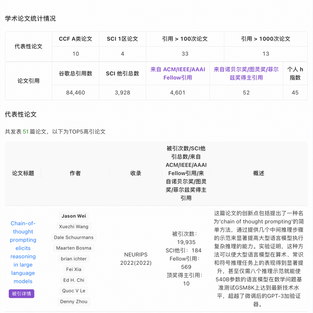 学者只需输入姓名或论文标题,系统即可在 3 分钟内完成成果聚合与分析,生成包含论文研究、学术亮点、他引细节等维度的完整报告。