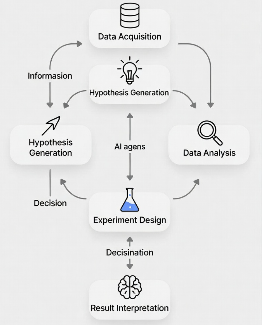 所谓科学智能体,就是在人类指令下,自动协调文献检索、假设生成、实验设计、数据分析等步骤的AI系统。