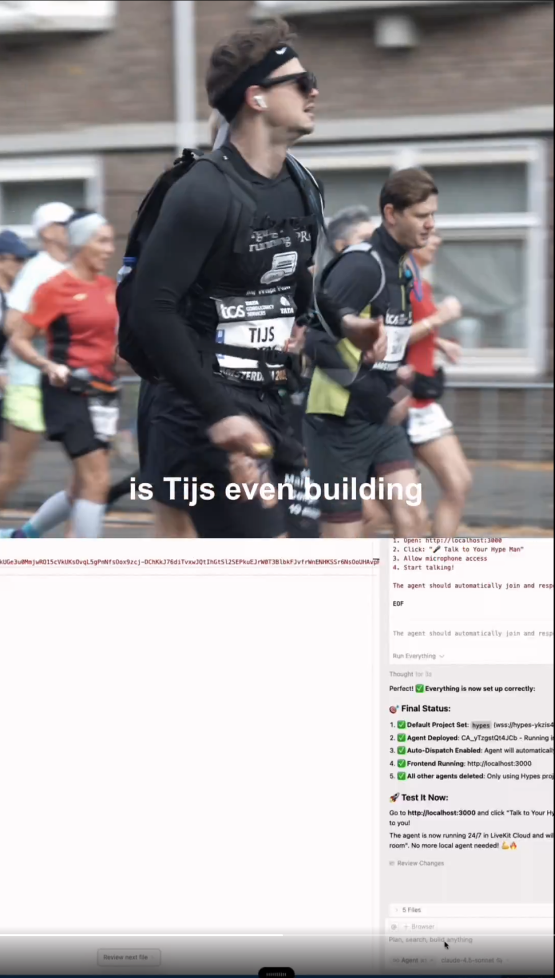 来自荷兰的开发者 Tijs Nieuwboer,通过背包里的 Macbook、AR 眼镜、任天堂 Switch 手柄和 Wispr 的语音交互,实现了边跑马拉松边编程|图片来源:Wispr