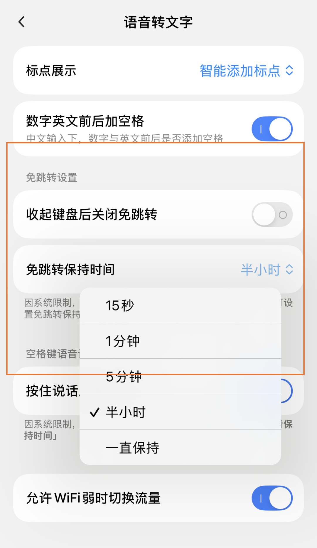 相比之下,微信输入法的策略显得更为保守,每次语音转录都需要跳转 App。