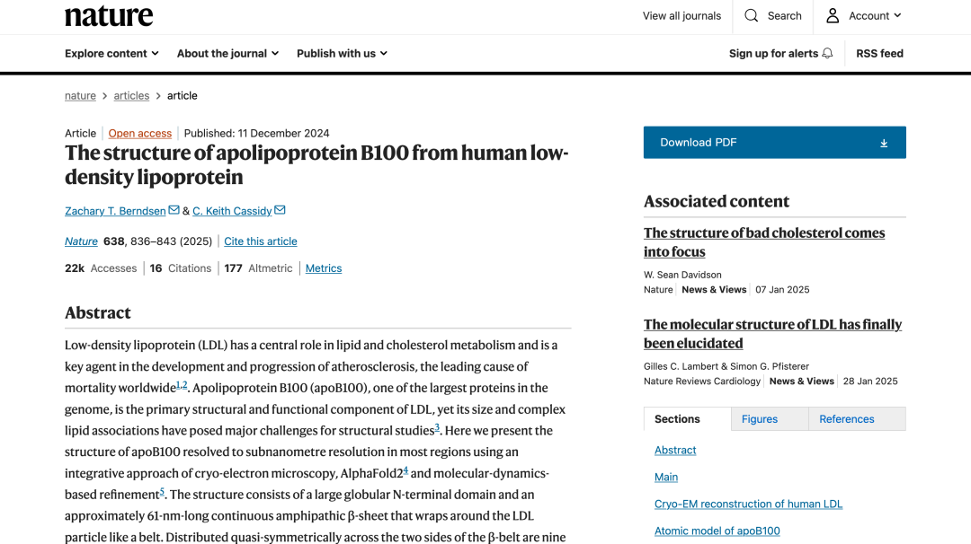 例如最近来自密苏里大学的研究团队,借助AlphaFold,成功揭开了心血管疾病的秘密——坏胆固醇(LDL),并刊登上了《Nature》。