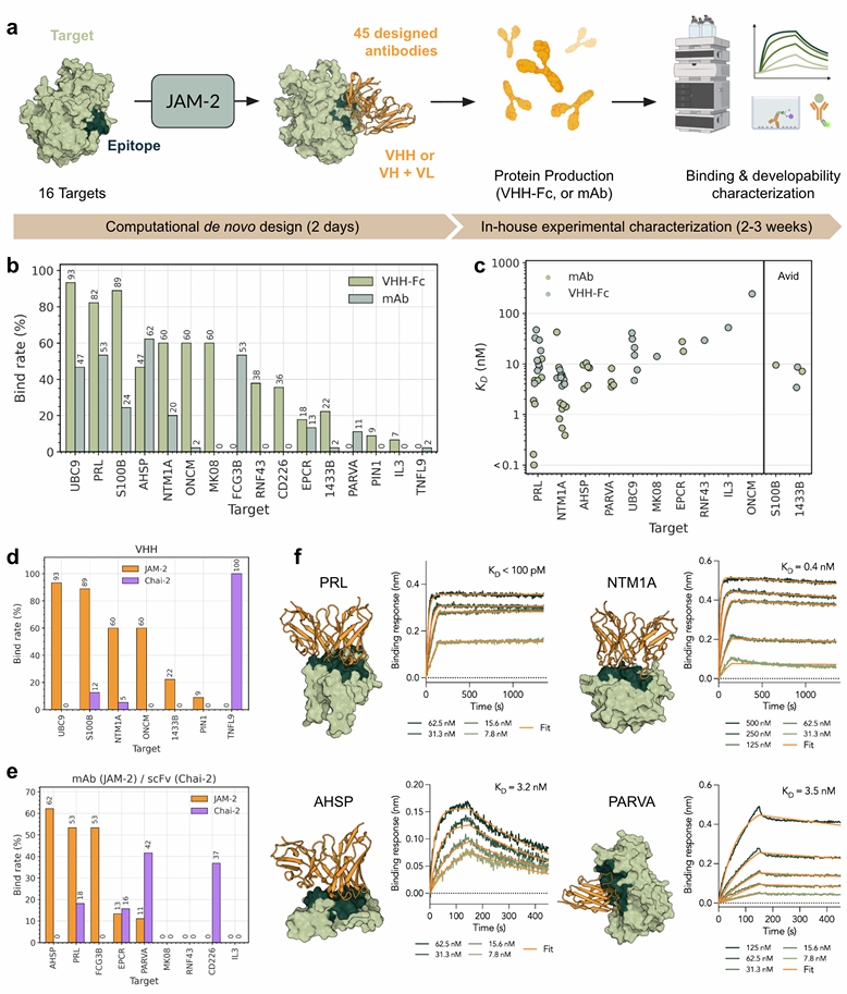 JAM-2 通过药物样亲和力设计出针对未见过靶标的抗体,并具有双位数结合率