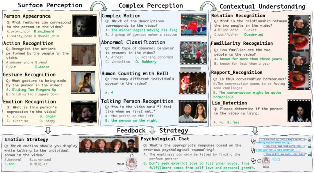 基于此,来自西安交通大学的研究团队联合蚂蚁集团提出了 HumanSense,这是一个旨在评估 MLLMs 以人为中心的感知和交互能力的综合基准,特别关注对扩展多模态上下文的深度理解以及合理反馈的制定。结果表明,MLLMs 在以人为中心的场景中存在显著改进空间,尤其是在面向高级交互的任务中。研究人员还设计了一种多阶段、模态渐进的强化学习方法,形成了 HumanSense-Omni-Reasoning,显著提升了在高级理解和交互任务上的性能。