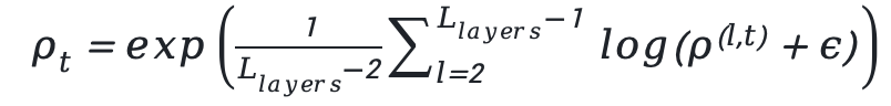 ,为降低层间噪声,排除首末层(主要负责输入编码与输出解码),计算几何均值