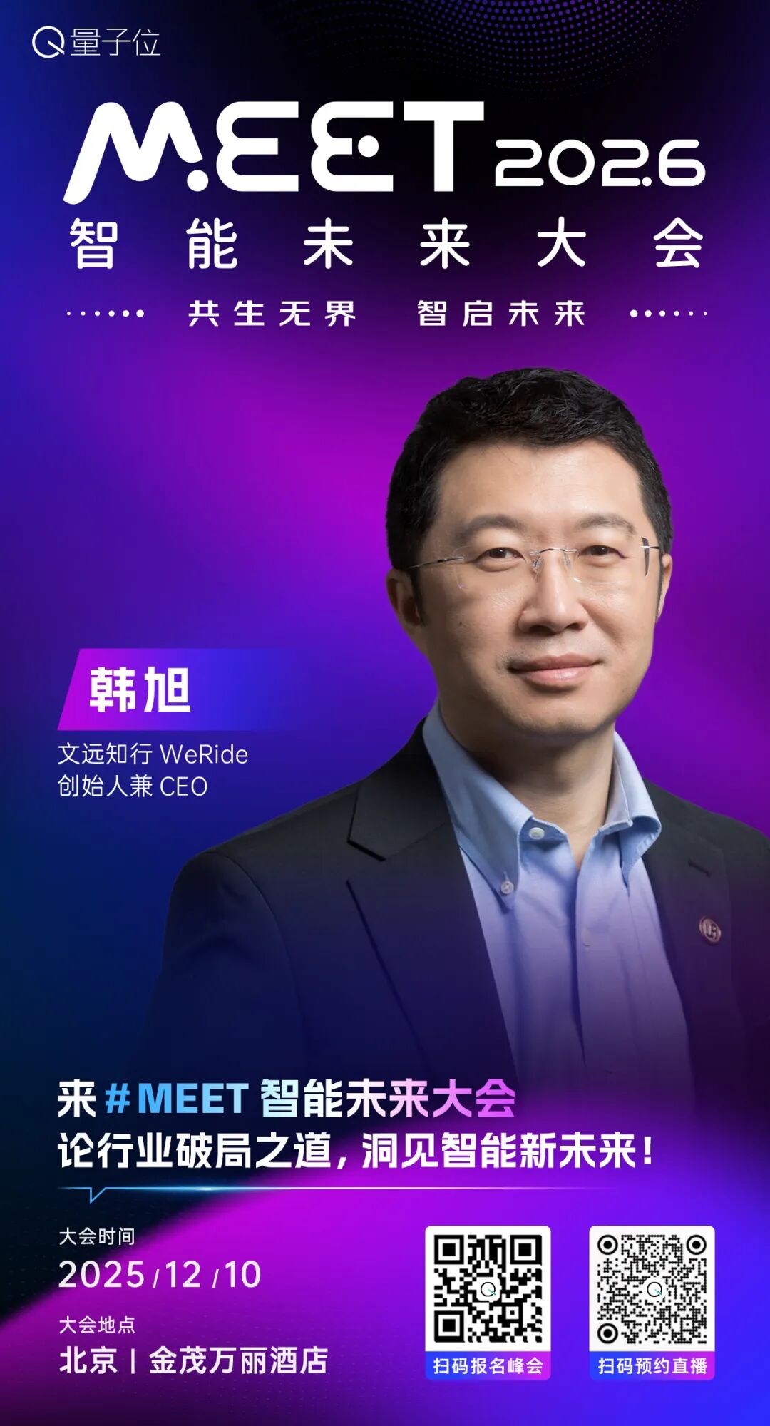 韩旭于2017年创立文远知行,带领公司在全球11国超30城开展自动驾驶研发、测试和运营,2024年率公司成功登陆纳斯达克,成为“全球通用自动驾驶第一股”、“全球Robotaxi第一股”,2025年率公司成功登陆香港交易所,成为“港股Robotaxi第一股”。