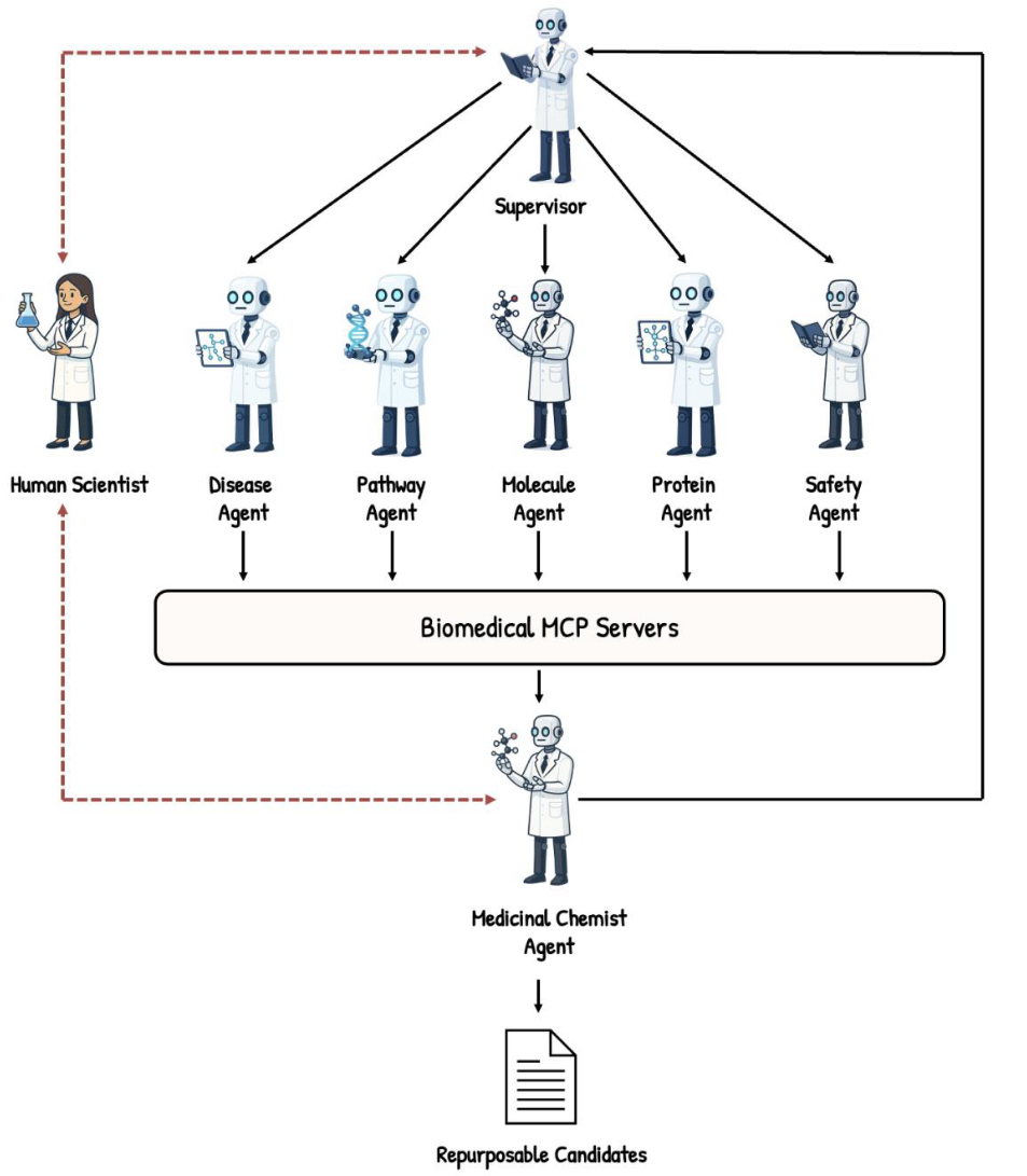 2025年10月31日,博德研究所、剑桥大学、乌普萨拉大学等机构的研究人员在arXiv上联合发表综述文章,题为“AI Agents in Drug Discovery”。
