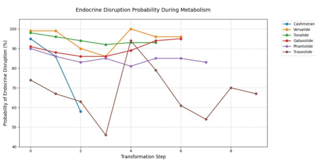 图6 六种化学物质在代谢步骤中的内分泌干扰概率