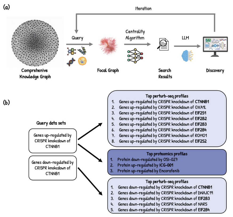 运行Focal Graph搜索,寻找其他潜在的新基因,其扰动会产生类似的基因表达谱。该工作流程表明,使用AI智能体进行的体外计算可以通过Focal Graph方法增强数据搜索能力,从而覆盖几乎任何治疗领域、治疗方式、数据类型或研发阶段。