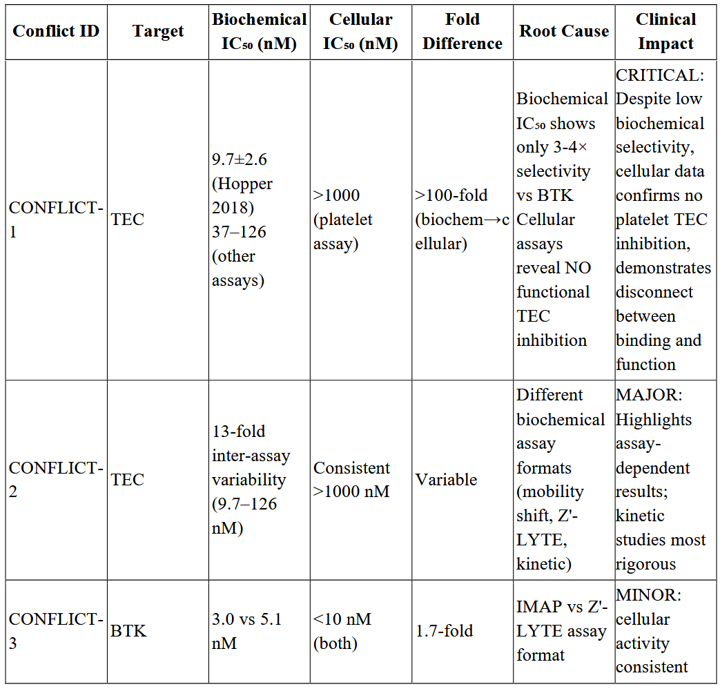 表2 多来源IC₅₀数据提取-Acalabrutinib与多种激酶靶点