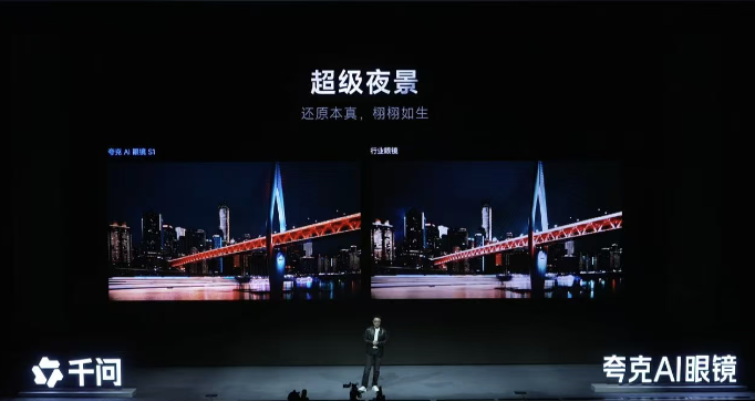 夸克AI眼镜这次用的是双光机双目显示,还做了国内首创的合像距可调,最大亮度能到4000nits,在户外环境也能拍的清楚。