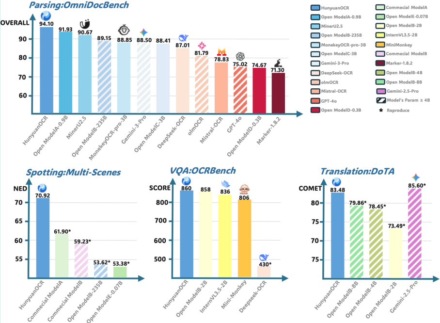 腾讯混元大模型团队正式发布并开源HunyuanOCR模型!