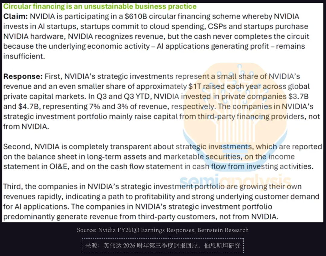 除了面对TPU的压力,英伟达还面临着通过「循环经济」造成AI泡沫的质疑,许多质疑者认为英伟达通过资助烧钱的AI初创公司,本质上是将钱从一个口袋转移到另一个口袋。