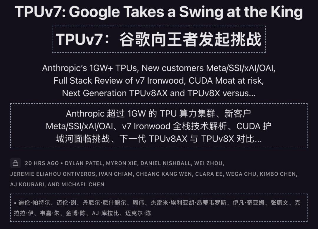 刚刚,他们最新的文章给出一个明确的结论:TPUv7首次向英伟达发起了冲锋。