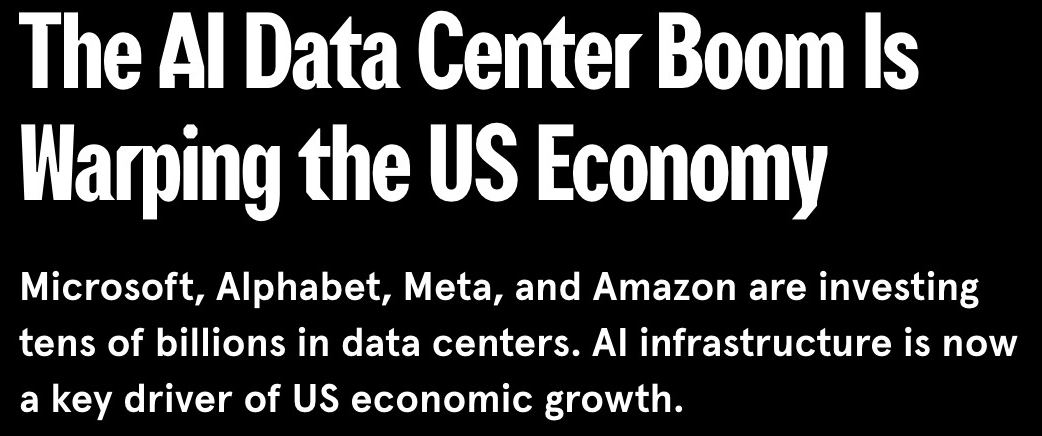 哈佛大学经济学家Jason Furman估计,2025年上半年,数据中心和软件处理技术的投资几乎贡献了美国全部的GDP增长。