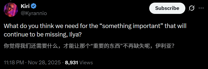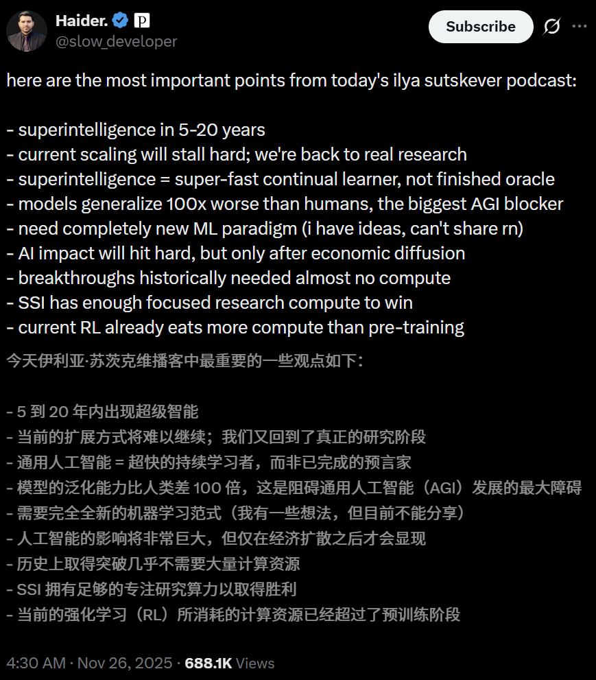或许,在这些未来的新架构、新想法、新方式中,可能包含着Ilya所提到的「重要的东西」。