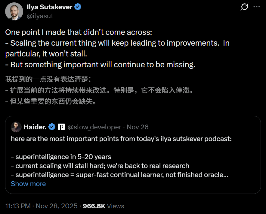 就在昨天,Ilya赶紧出来做了一个非常关键的澄清——