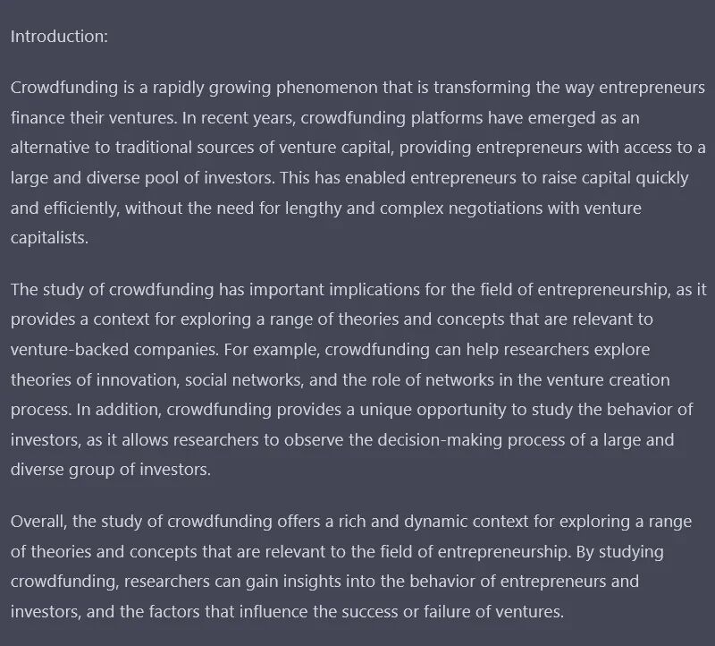 GPT-3生成的一篇关于众筹如何助力创业的学术综述论文