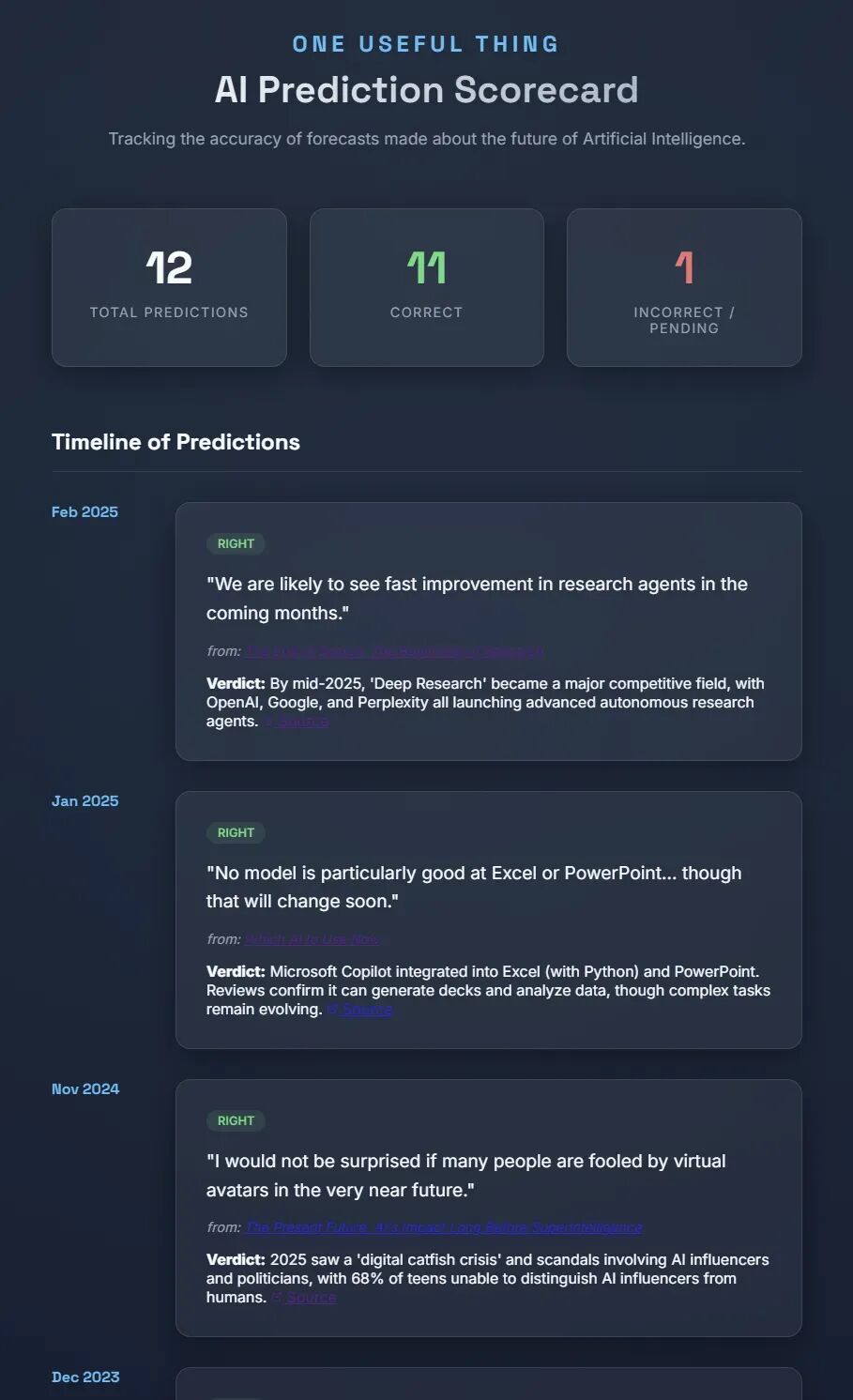 帮我做一个漂亮的网站,汇总我过去所有关于AI的预测,并去网上查查哪些预测准了、哪些错了。