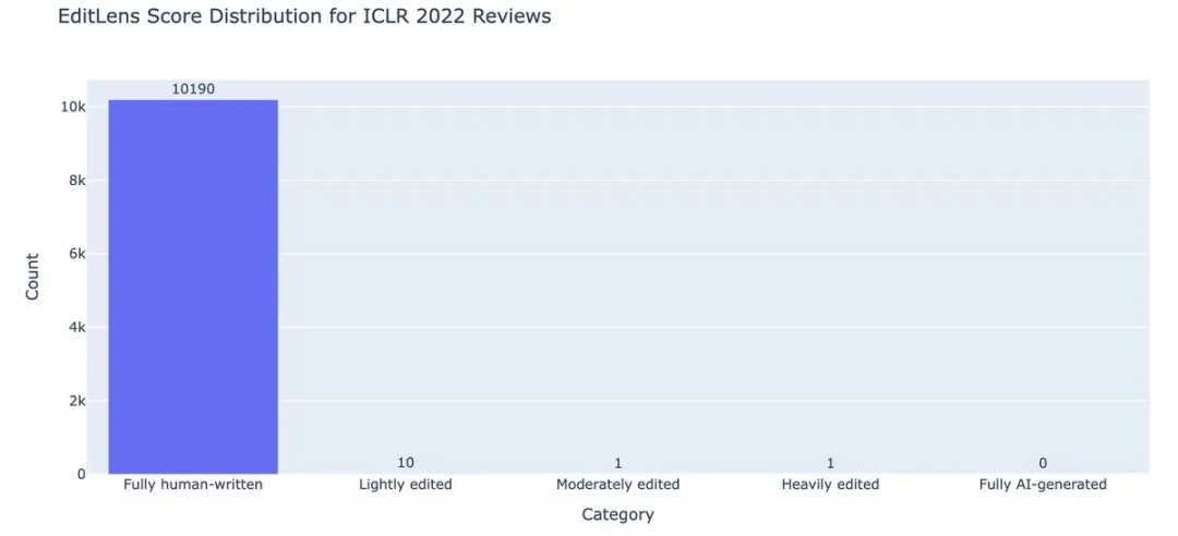 为了验证模型的准确程度,Pangram还拿2022年之前的ICLR论文和NeurIPS论文做了测试。