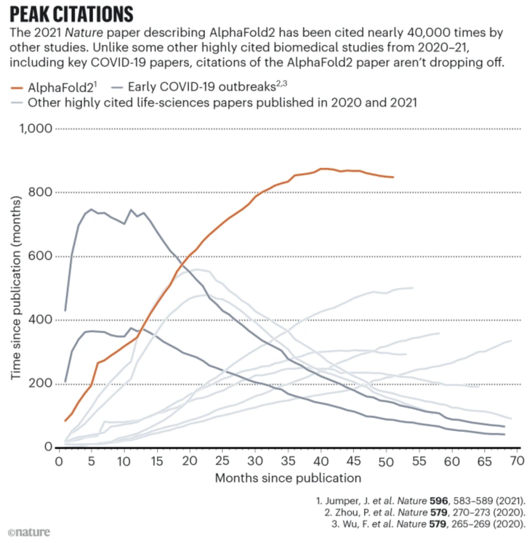 自 AlphaFold2 代码在 2021 年完全开源以来,其影响力爆炸式增长: