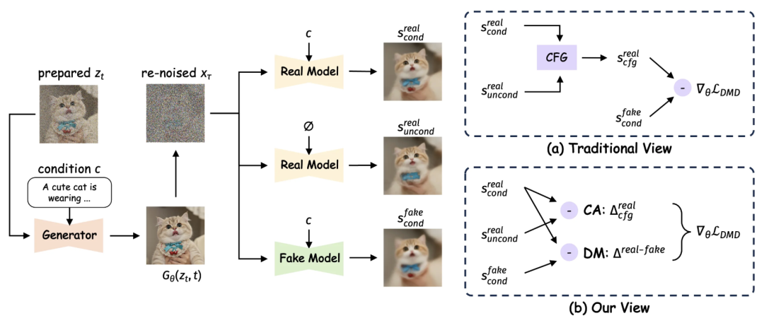 Z-Image是基础版的“提纯模型”,通过Decoupled-DMD把大模型的能力蒸出来,同时把加速所需的CFG Augmentation(加速核心)和保证质量的Distribution Matching(质量稳定)分开优化。