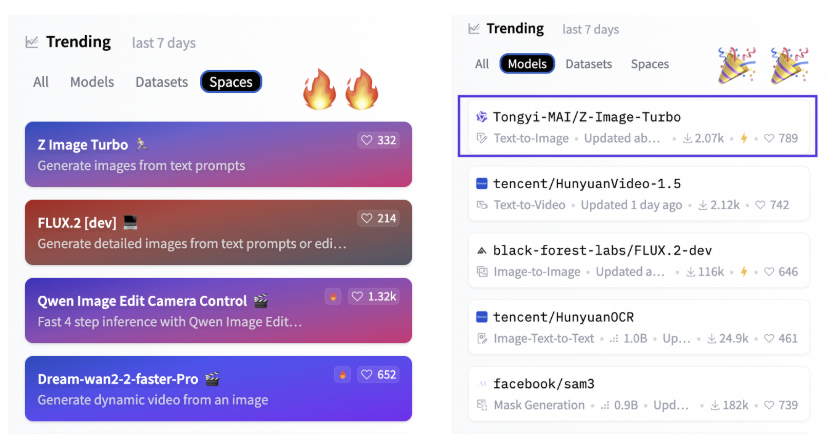 6B小模型,首日下载量高达50万次,上线不到两天直接把HuggingFace两个榜单都冲了个第一。