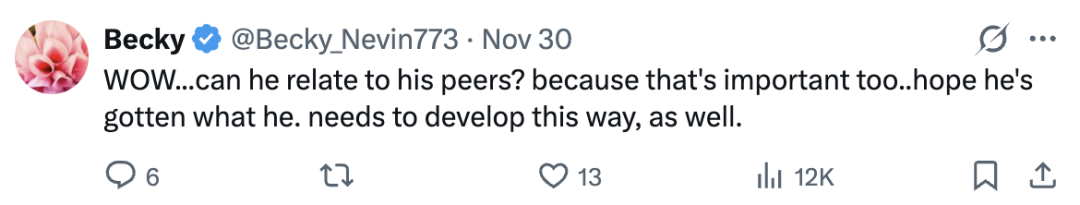 哇……他能和同龄人相处吗?因为这也很重要……希望他也能获得正常的成长环境。
