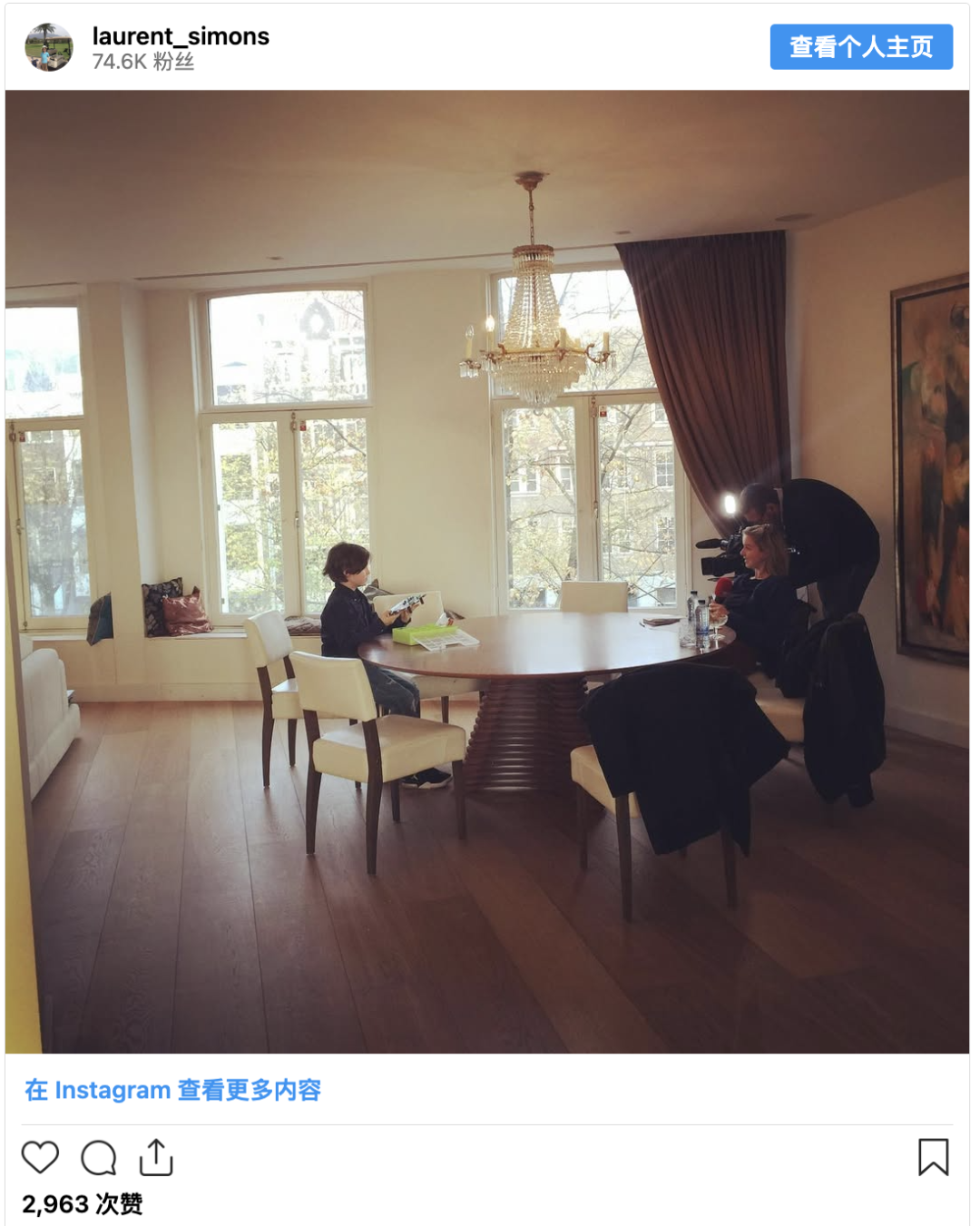 在Laurent的Instagram账号上,有一张照片显示他坐在电视摄制组面前,配文写着:
