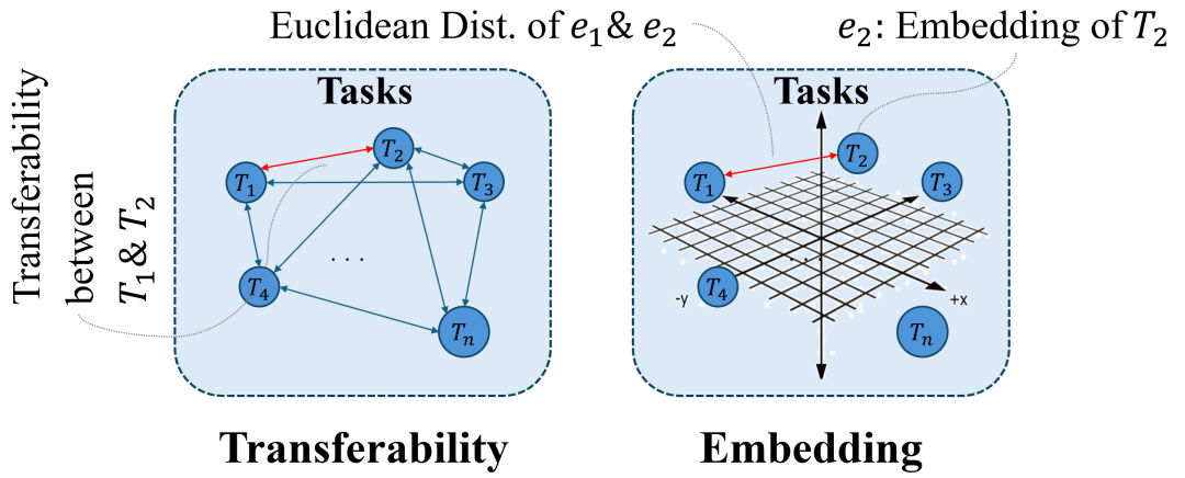可迁移性和任务嵌入的图解关系